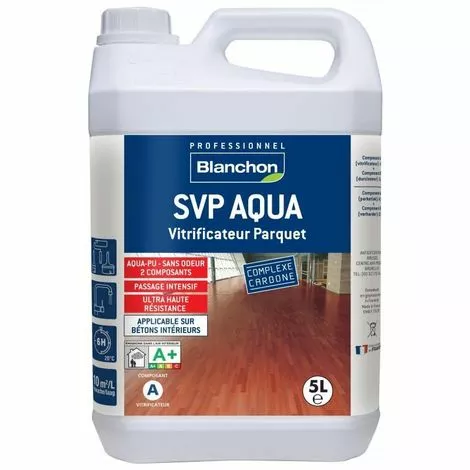 Produit NouveauVitrificateursVitrificateurs parquets polyuréthane bi-composants SVP Aqua Vitrificateur polyuréthane bi-composants.Pour tous parquets, planchers, escaliers…Toutes essences de bois.Trafic intense. Ne glisse pas.Sans odeur.Utilisation intérieure.